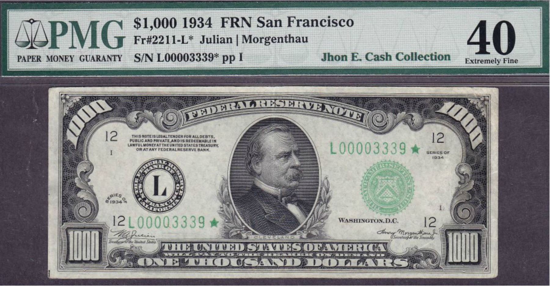 One 1934 $1000 San Francisco Federal Reserve Star Note PMG 40.