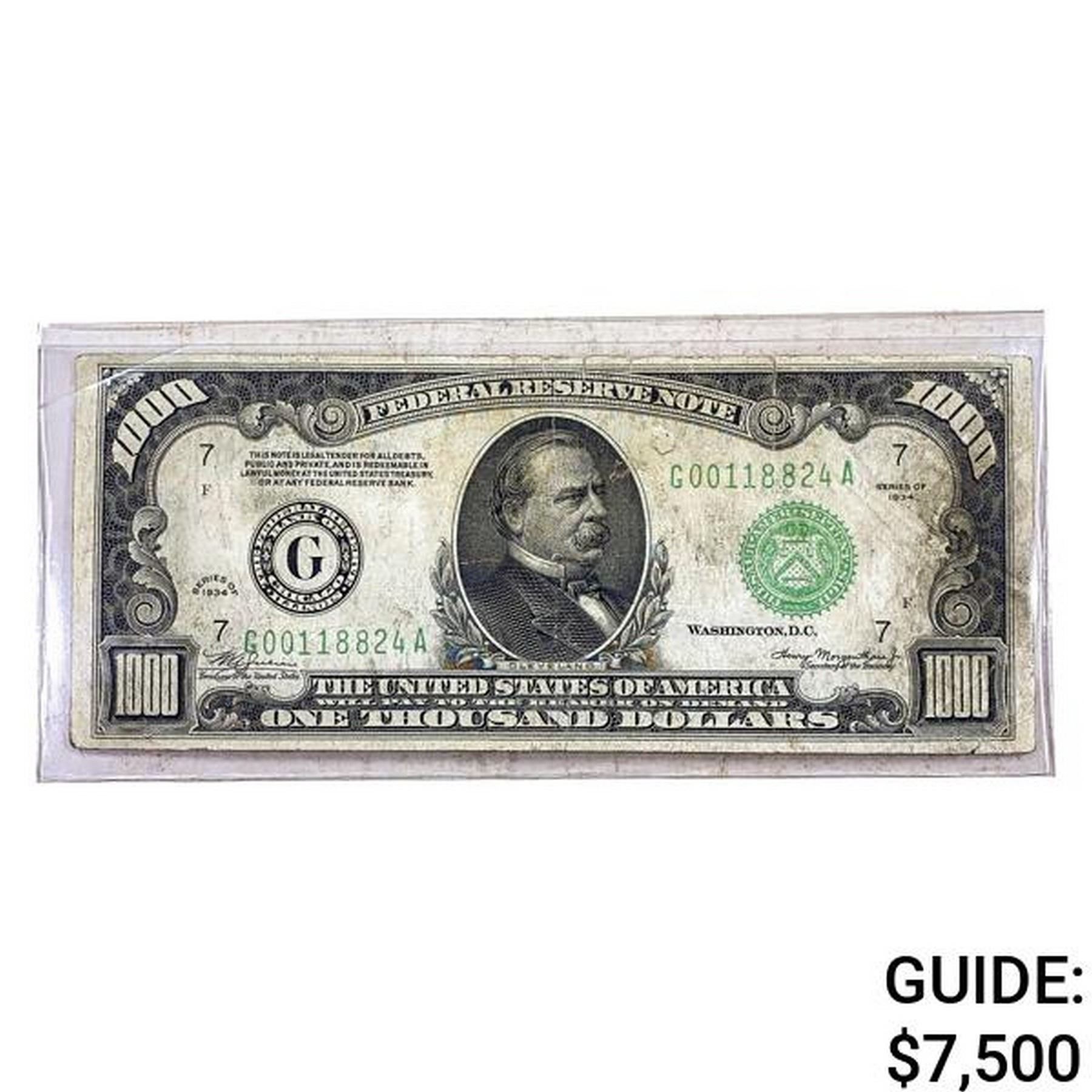 1934 $1000 U.S. Federal Reserve Note Choice VF