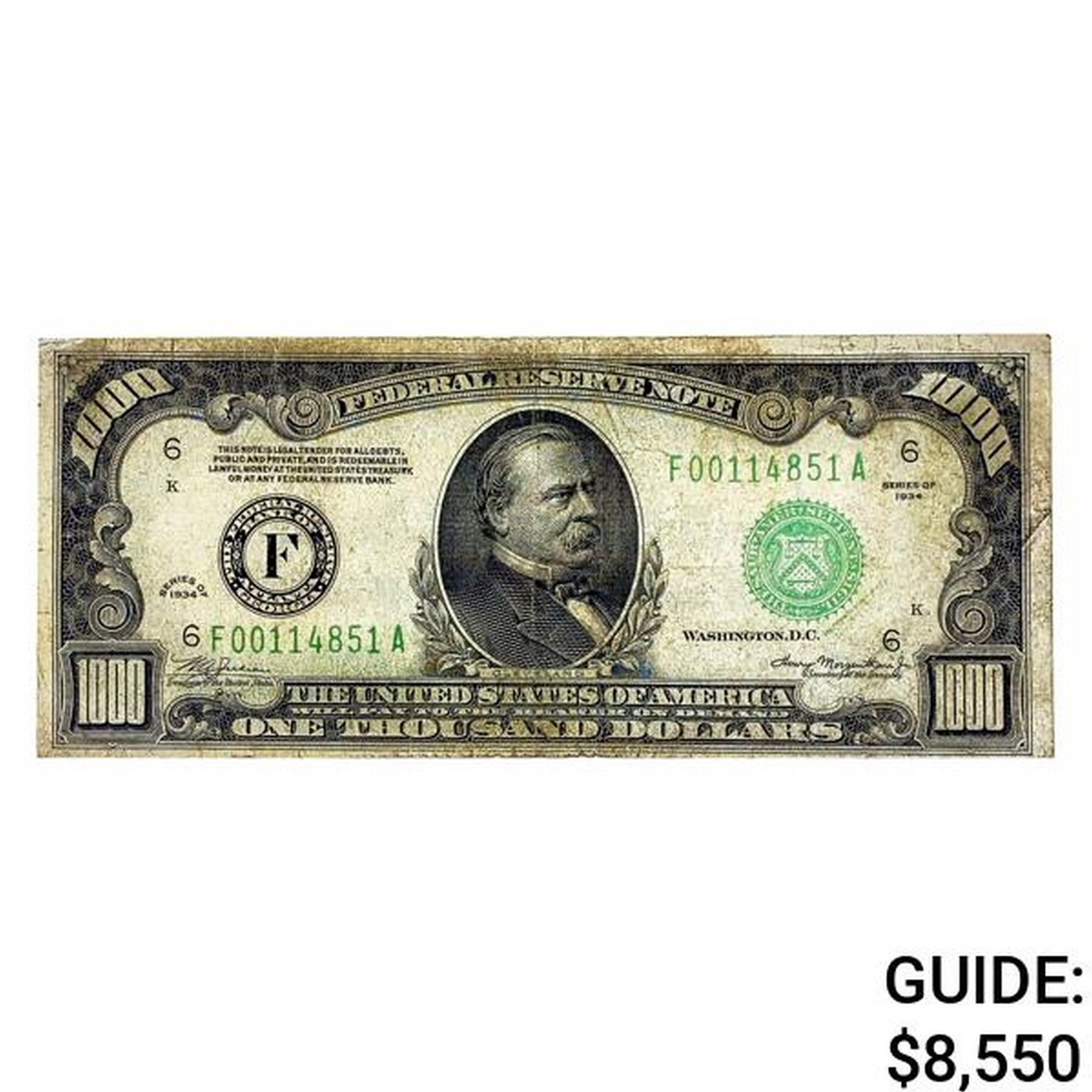 1934 $1000 U.S. Federal Reserve Note Choice VF