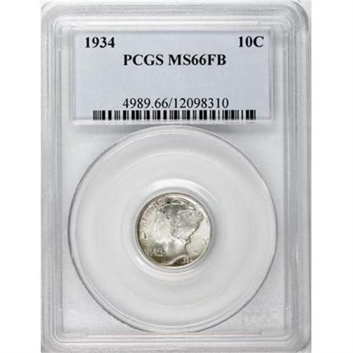 <B>1934 10C MS66 Full Bands PCGS.</B></I> PCGS Population (344/173). NGC Census: (135/64). Mintage: 24,080,000. Numismedia Wsl. Price for NGC/PCGS coin in MS66: $160. (#4989)<BR><BR><B>Coin Engraver:</B> Adolph A. Weinman<BR><BR><b>Shipping:</b> Coins & Currency (<a target="_blank" href="http://www.heritageauctions.com/common/shipping.php">view shipping information</a>)