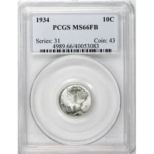 <B>1934 10C MS66 Full Bands PCGS.</B></I> PCGS Population (344/172). NGC Census: (135/64). Mintage: 24,080,000. Numismedia Wsl. Price for NGC/PCGS coin in MS66: $160. (#4989)<BR><BR><B>Coin Engraver:</B> Adolph A. Weinman<BR><BR><b>Shipping:</b> Coins & Currency (<a target="_blank" href="http://www.heritageauctions.com/common/shipping.php">view shipping information</a>)
