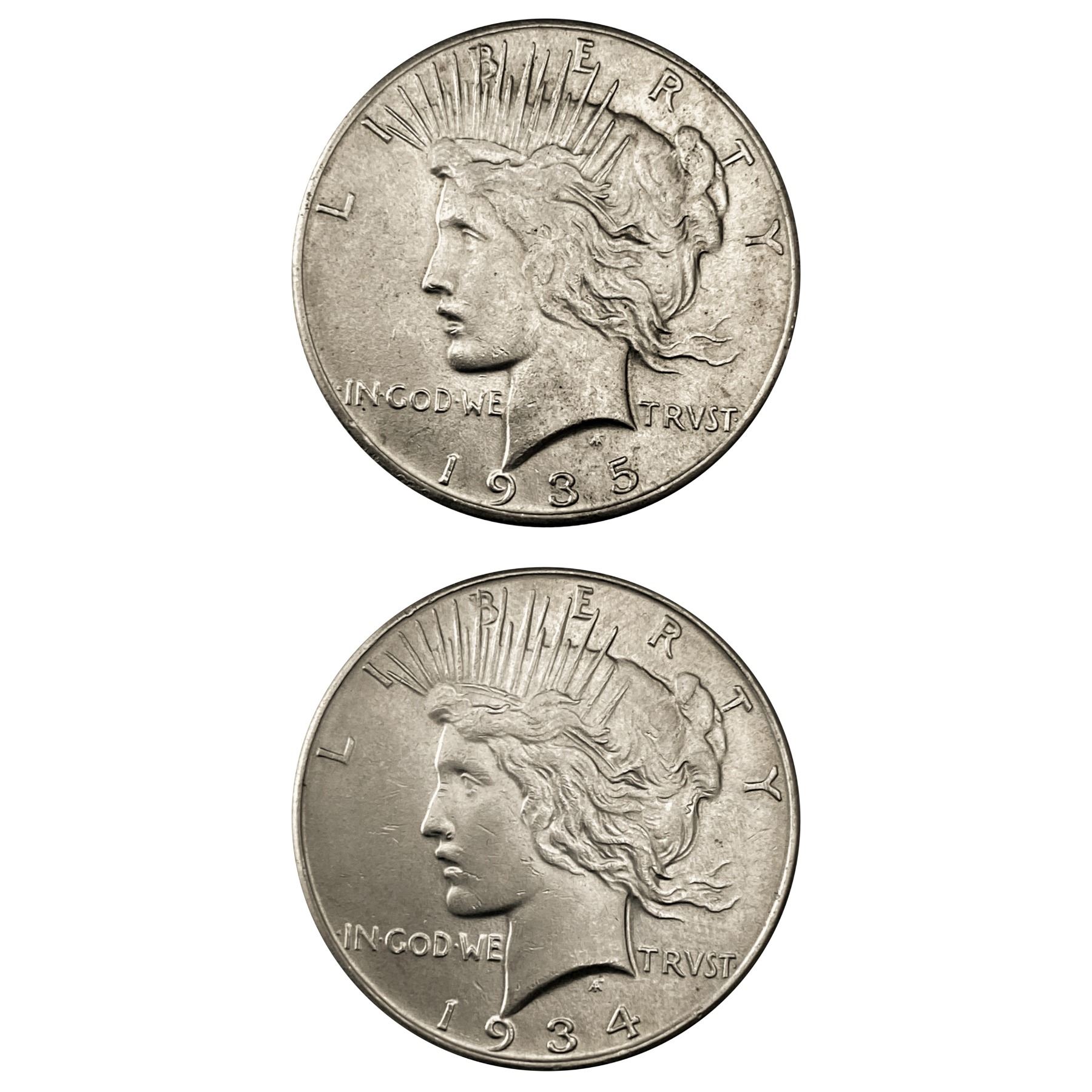 1934-1935 UNC Silver Peace Dollar Lot [2 Coins]