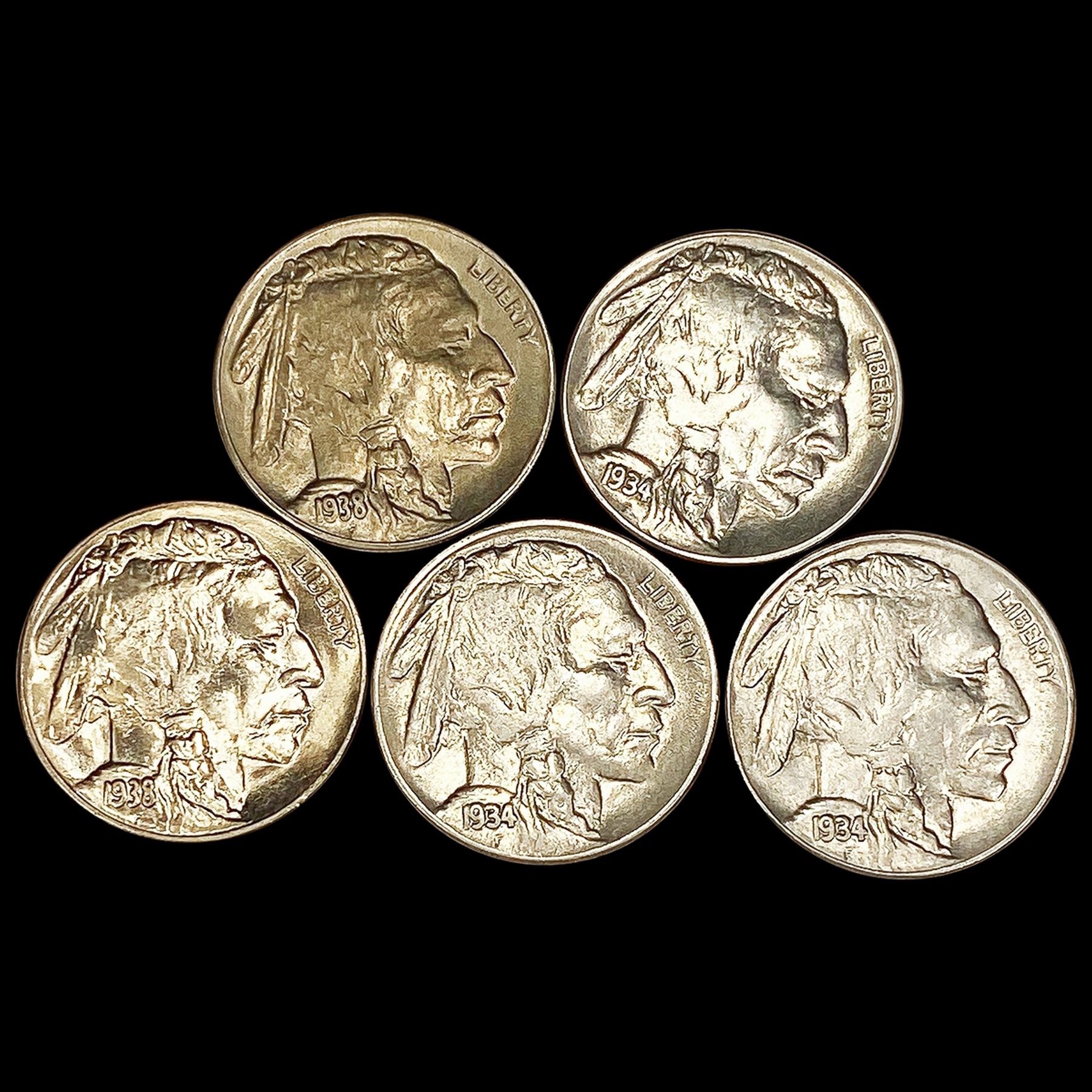 1934-1938 (5) Buffalo Nickels UNCIRCULATED