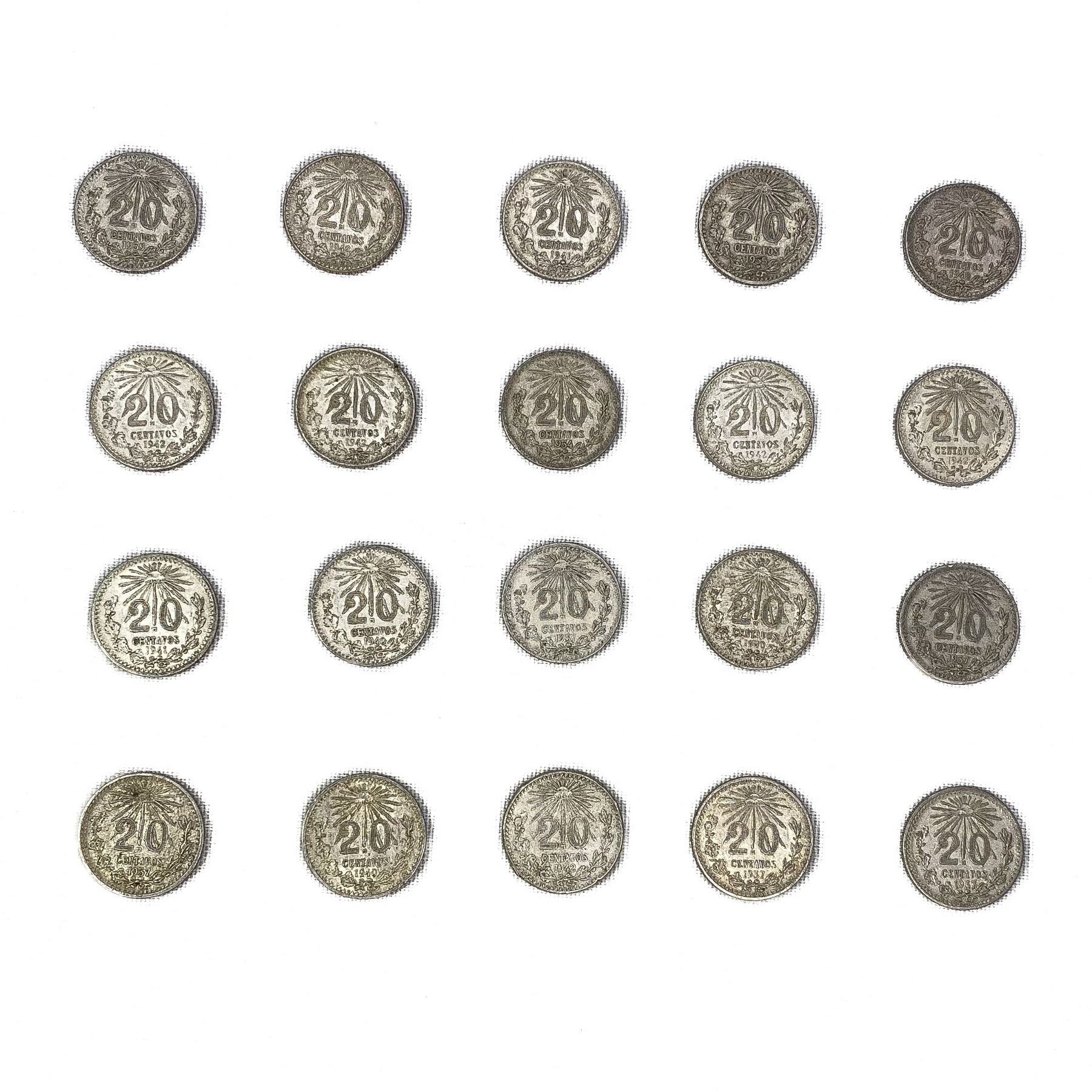 1934-1942 MX Silver 20 Centavos (20 Coins)