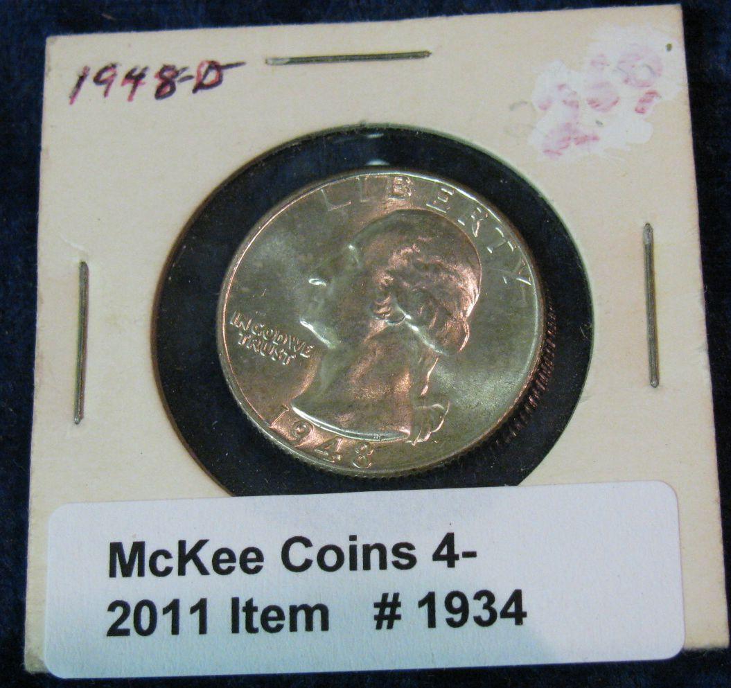 1934. 1948 D Washington Quarter. Brilliant Unc.