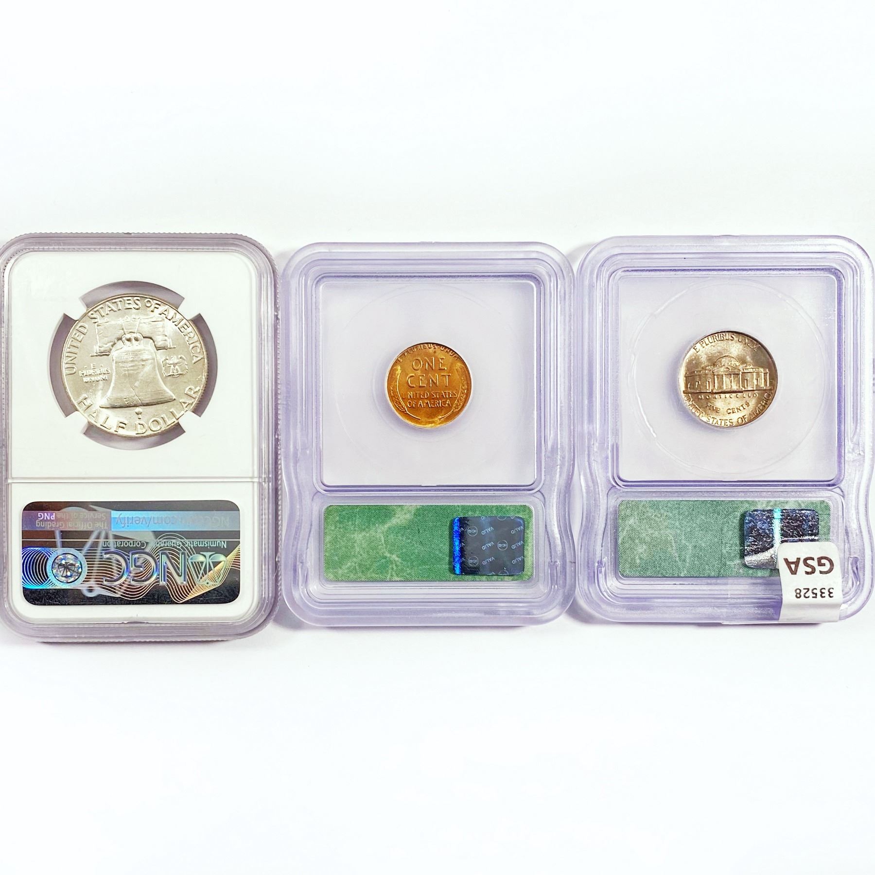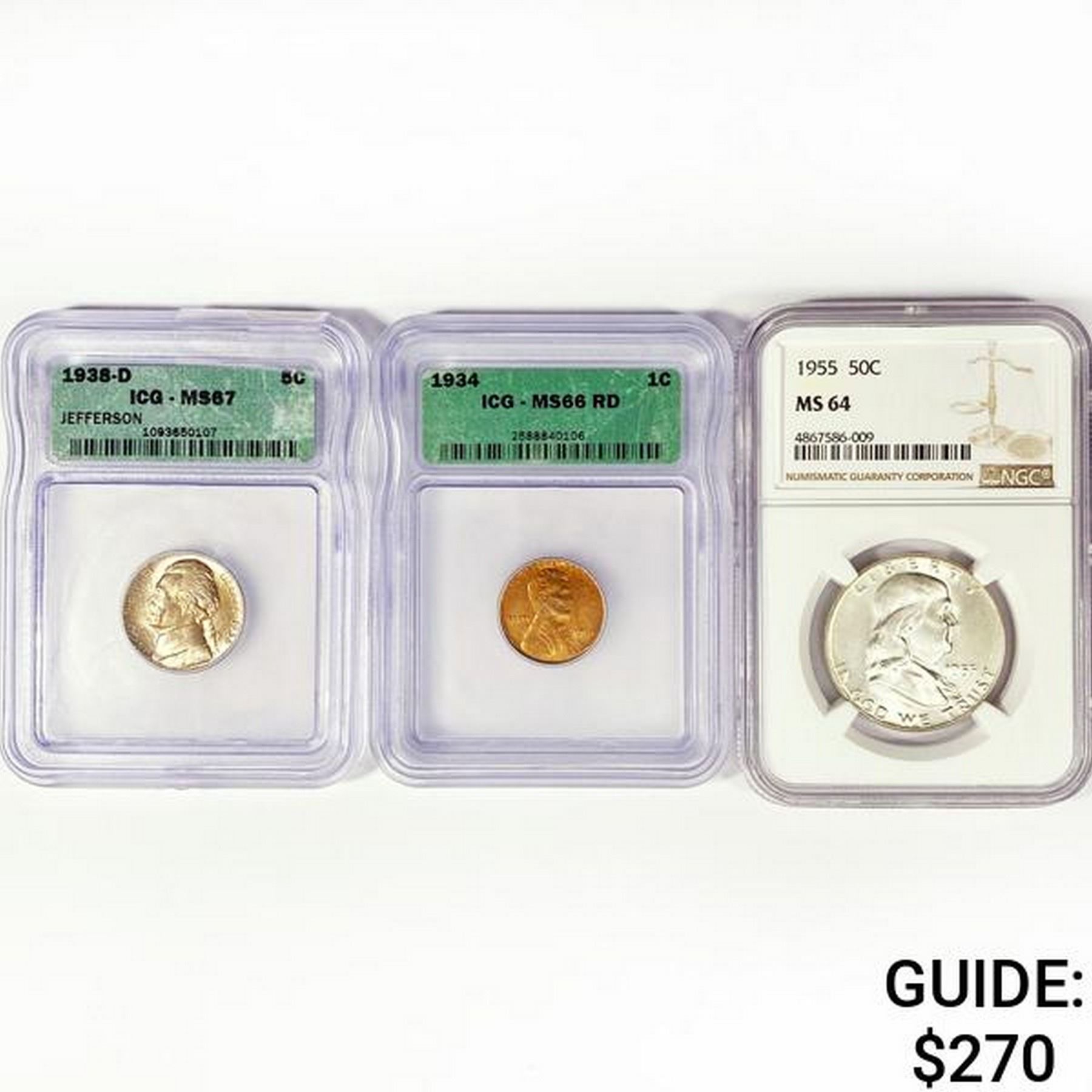 1934-1955 Set (3) 1C, 5C, 50C NGC, ICG MS