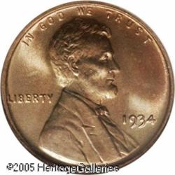 <B>1934 1C MS68 Red NGC.</B></I> Impressive ruby-red and gold color. A sensational Superb Gem that has a very good strike and intense cartwheel luster. The fields are remarkably close to being fully pristine with no visible marks. Population: 3 in 68, 0 finer (1/05).<BR><I>From The Kim Mitchell Collection, Part Two.</B></I> Lot:5533