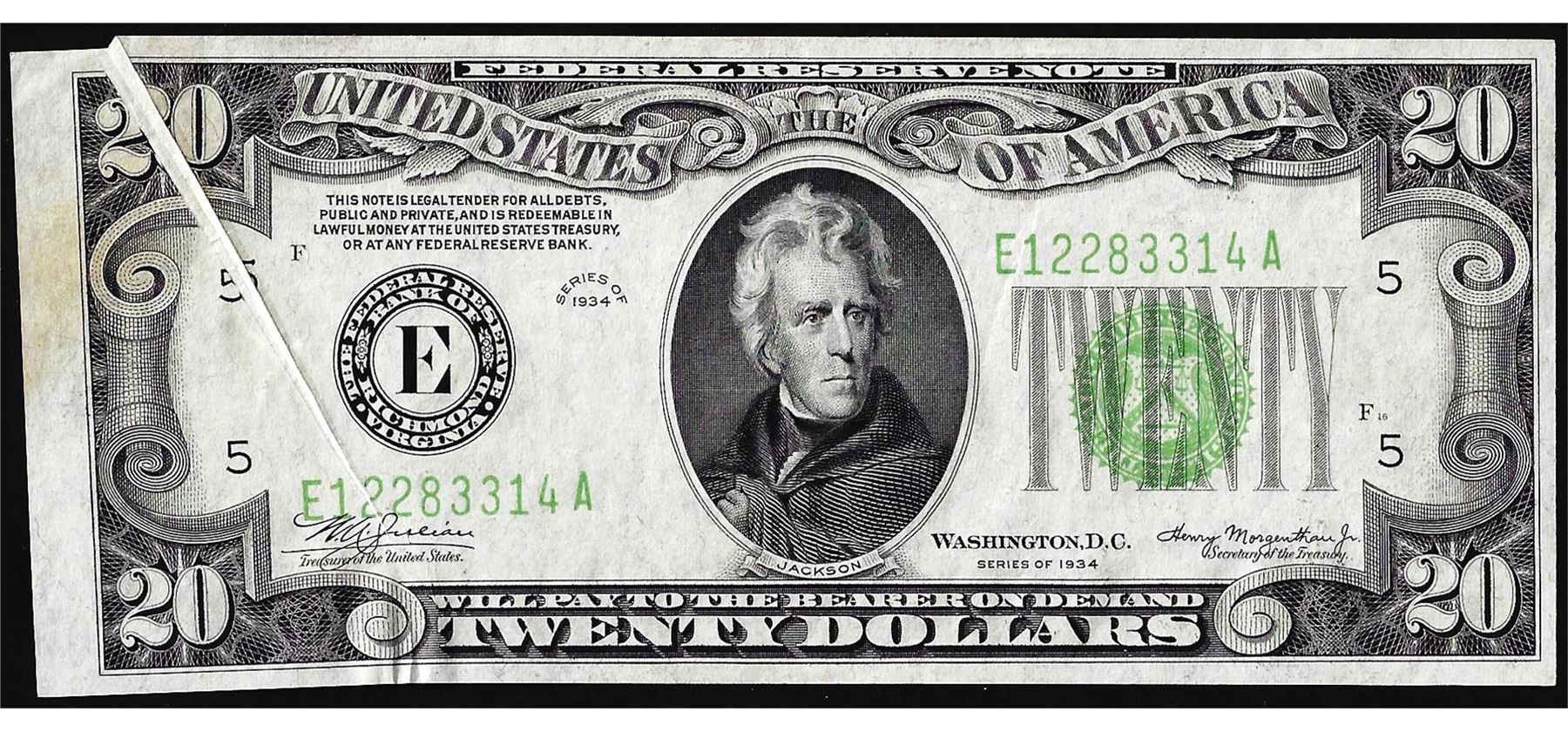 One 1934 $20 Federal Reserve Note Gutter Fold Error.