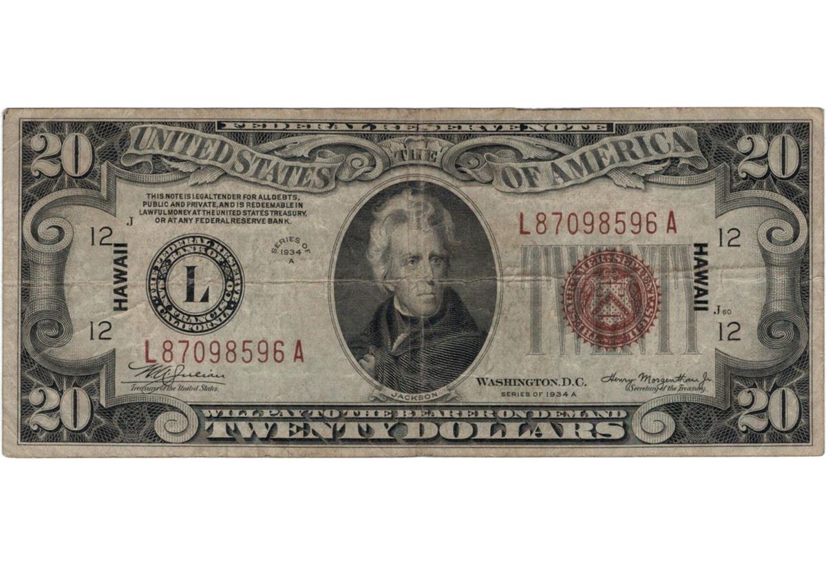 1934 $20 Hawaii Federal Reserve Note Currency.
