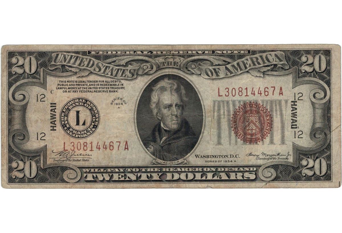 1934 $20 Hawaii Federal Reserve Note Currency.