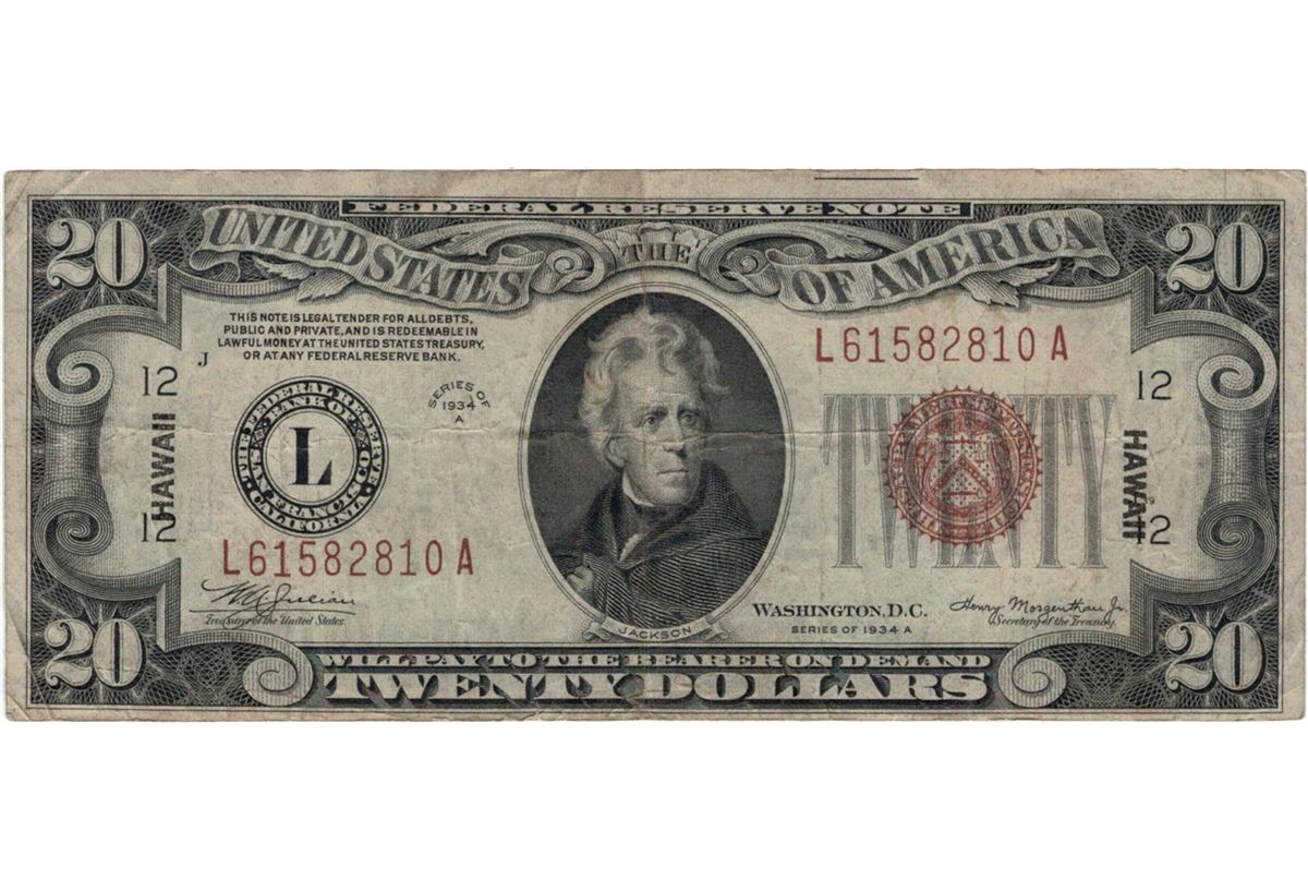 1934 $20 Hawaii Federal Reserve Note Currency.