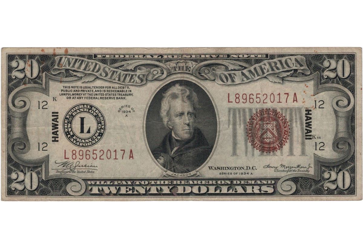 1934 $20 Hawaii Federal Reserve Note Currency.