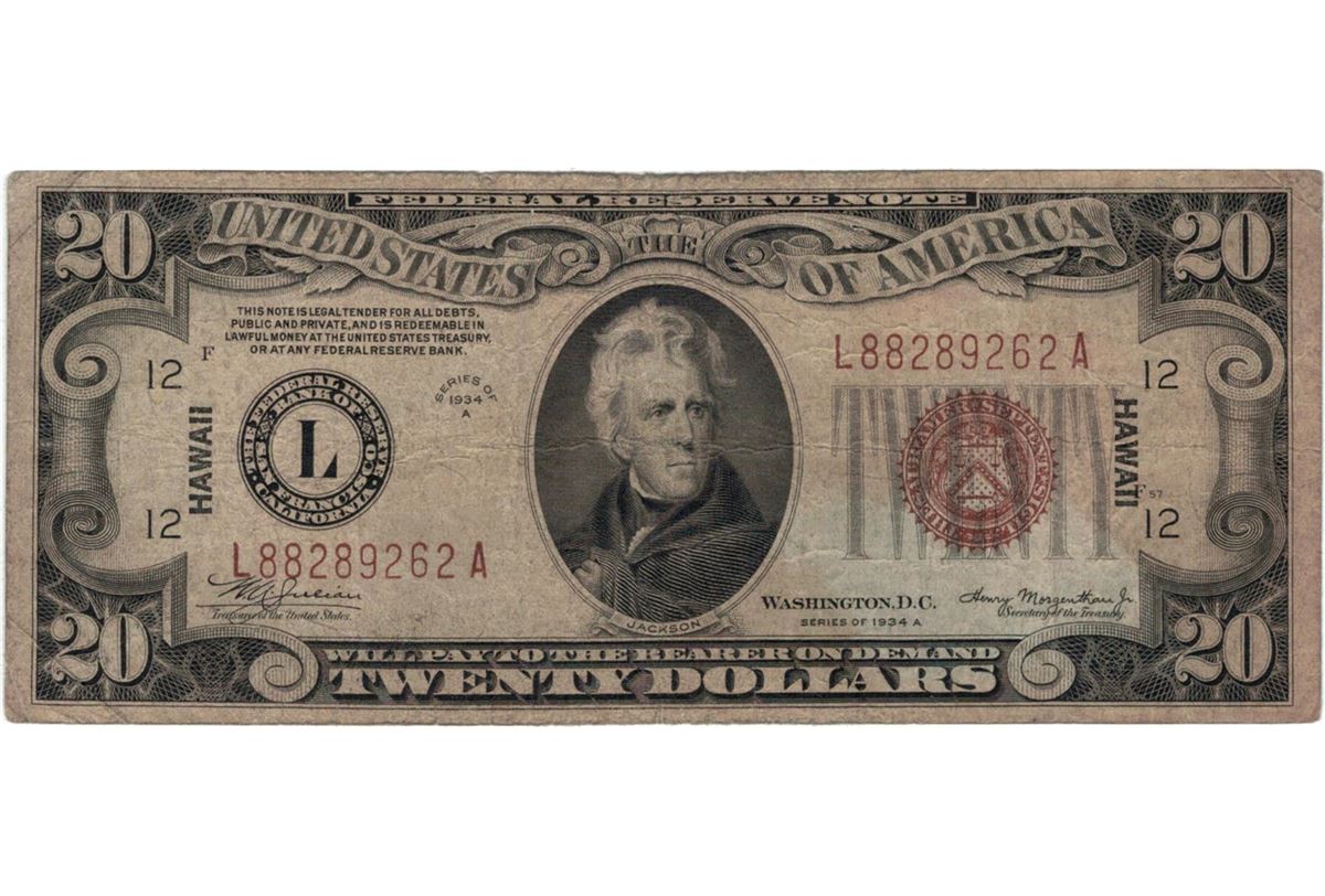 1934 $20 Hawaii Federal Reserve Note Currency.