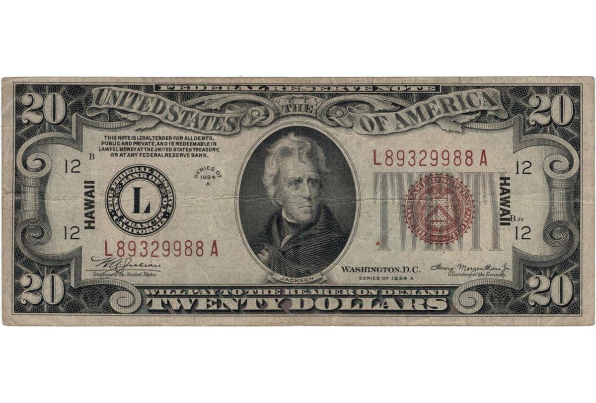 1934 $20 Hawaii Federal Reserve Note Currency.