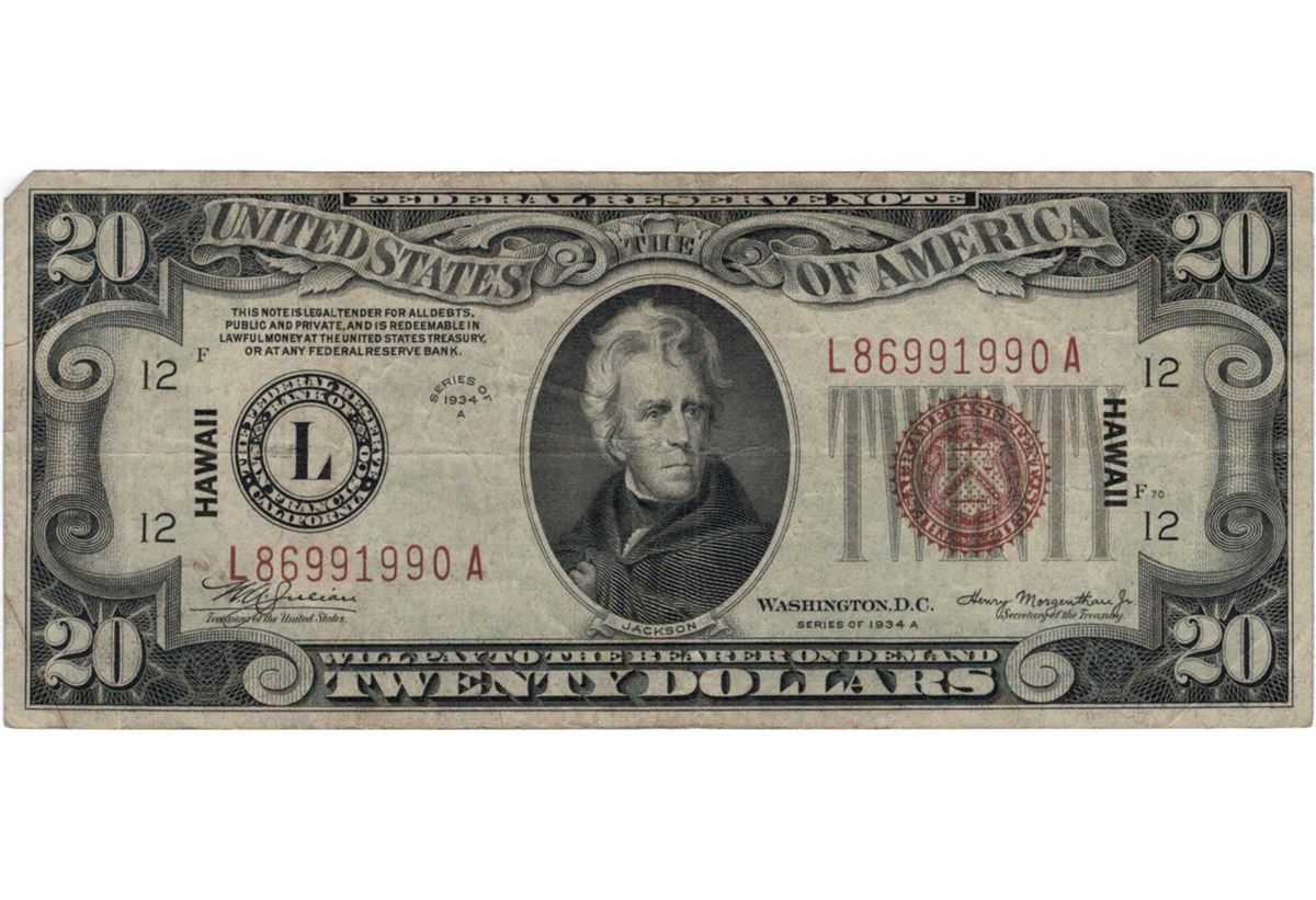 1934 $20 Hawaii Federal Reserve Note Currency.
