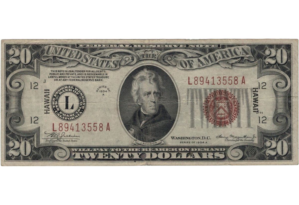 1934 $20 Hawaii Federal Reserve Note Currency.
