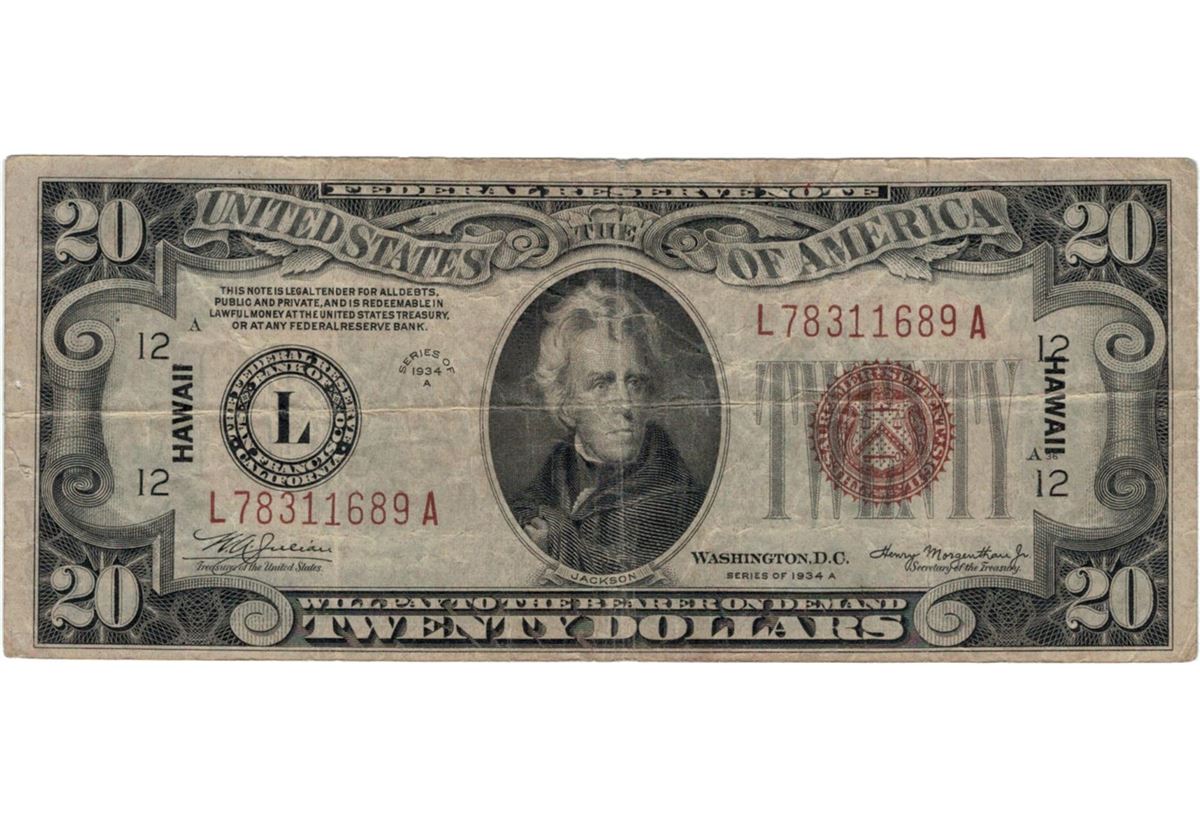 1934 $20 Hawaii Federal Reserve Note Currency.