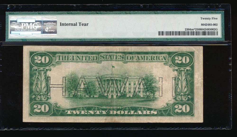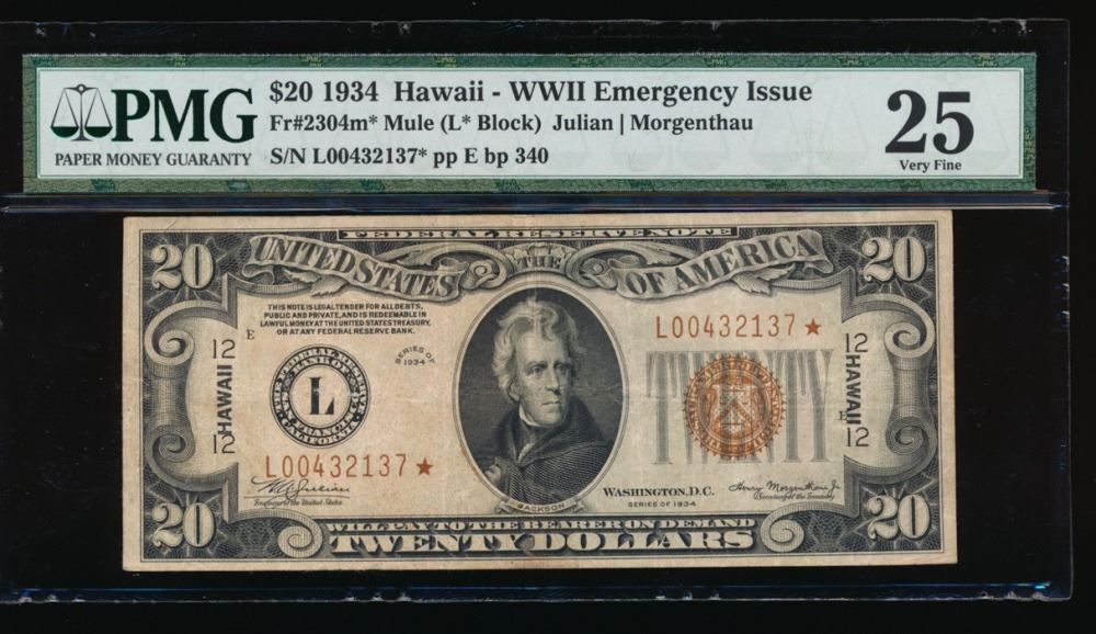 One 1934 $20 Hawaii Mule Star Federal Reserve Note PMG 25.