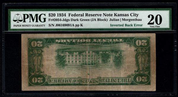 One 1934 $20 Inverted Back Federal Reserve ERROR Note PMG 20.