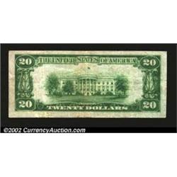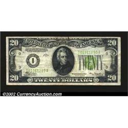 1934 $20 Light Green Seal Federal Reserve Note, Fr-2054-I, VF. There is a paper clip rust stain on the obverse.