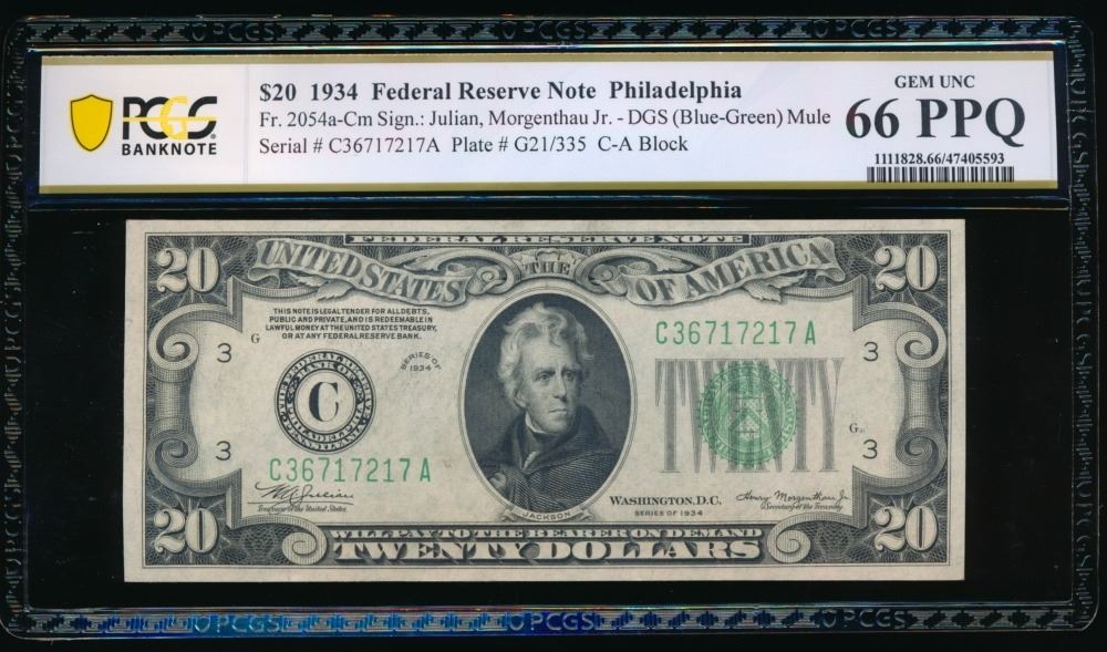 One 1934 $20 Philadelphia FRN PCGS 66PPQ.