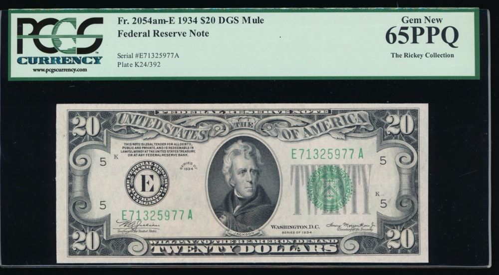 One 1934 $20 Richmond Federal Reserve Note PCGS 65PPQ.