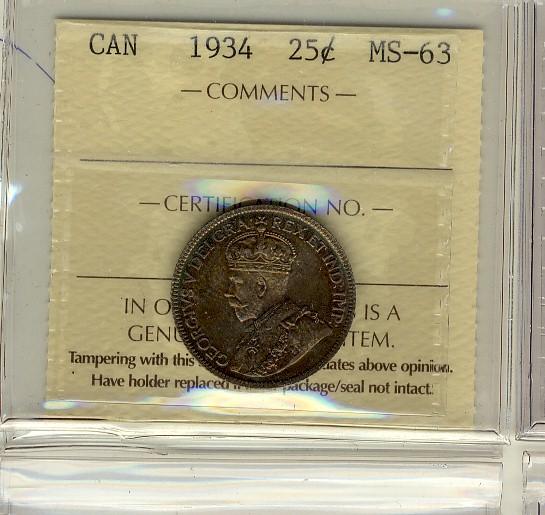 1934 25¢ ICCS MS63