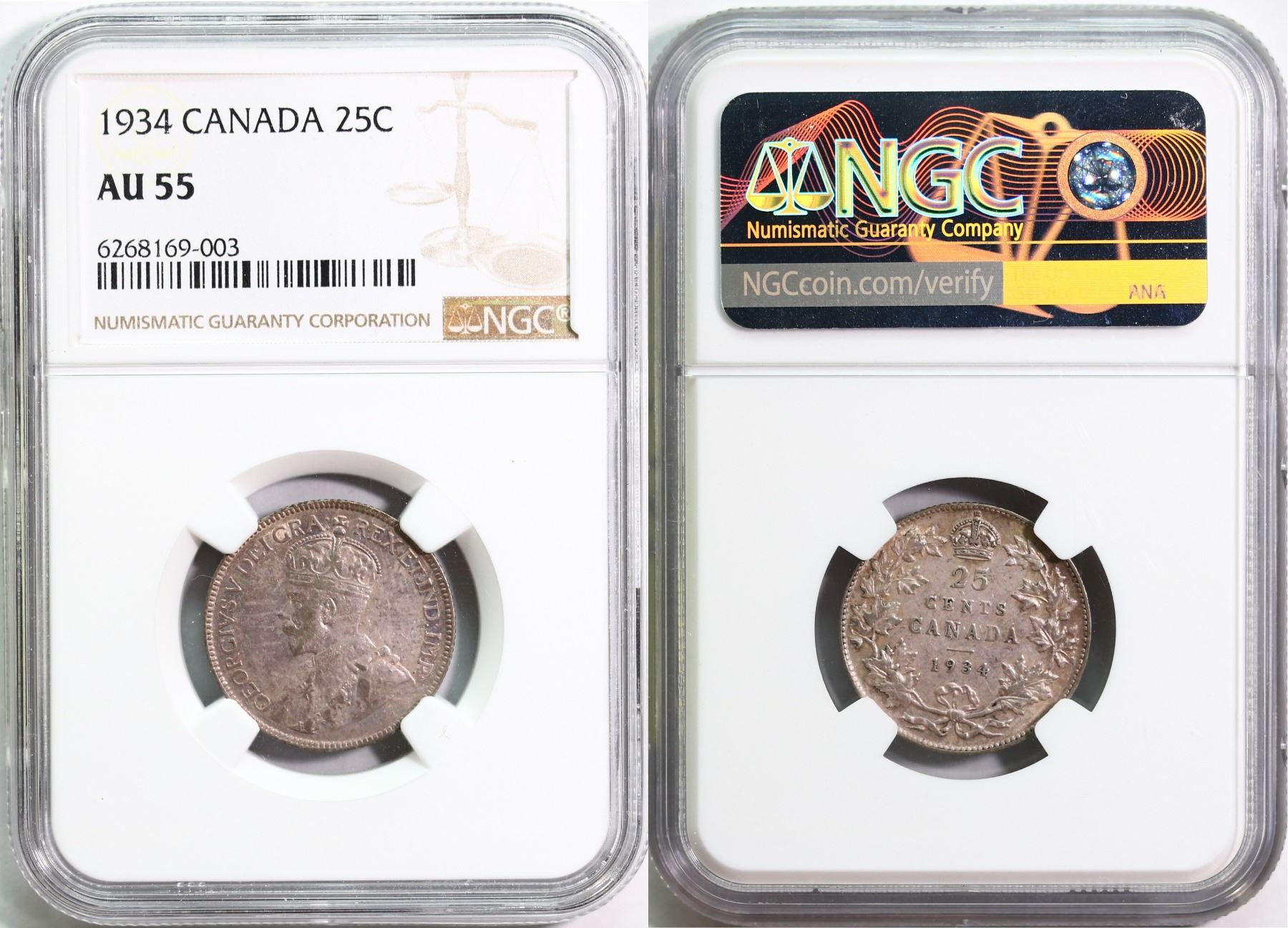 1934 25¢ NGC Choice About Uncirculated-55 Lightly toned.