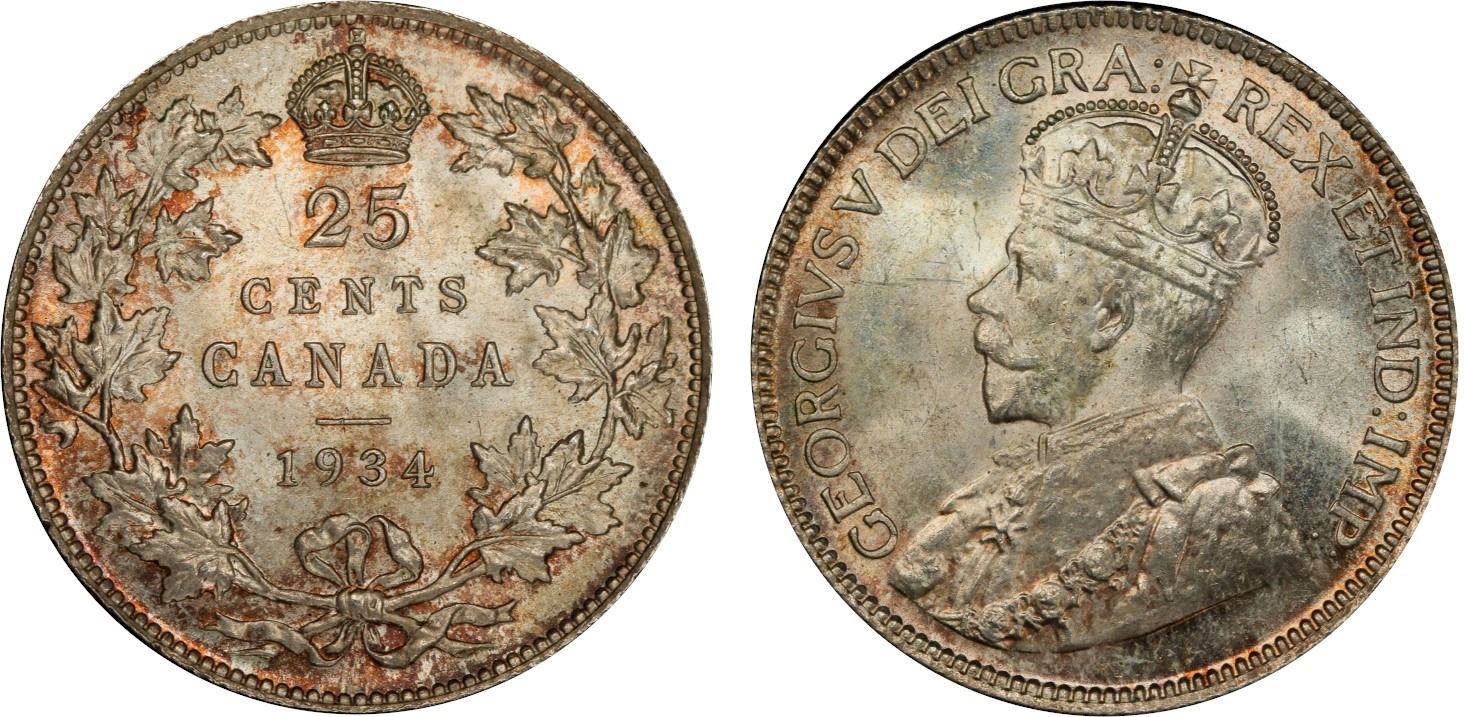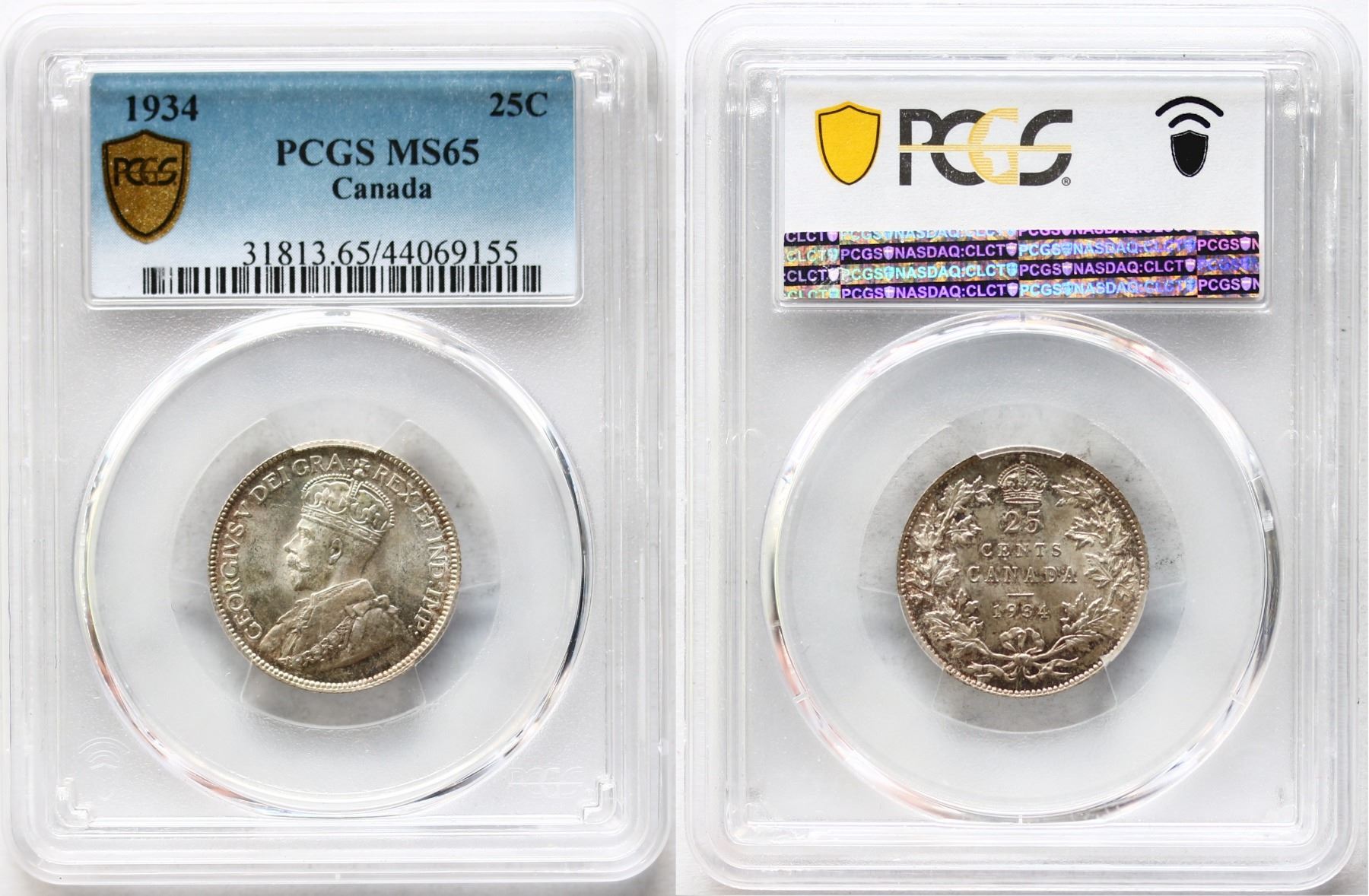 1934 25¢ PCGS Gem Mint State-65 Brilliant and lustrous with a hint of gold and russet tones. An appealing coin!