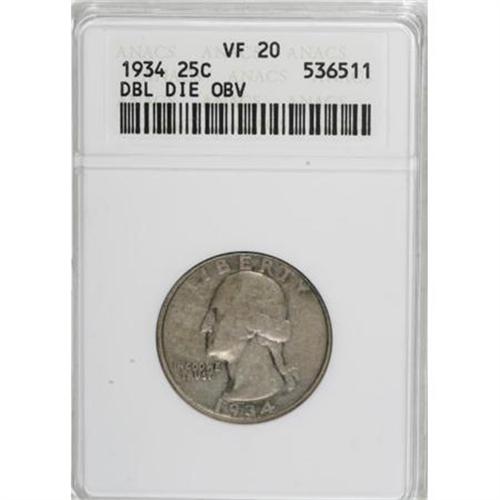 1934 25C Doubled Die Obverse VF20 ANACS