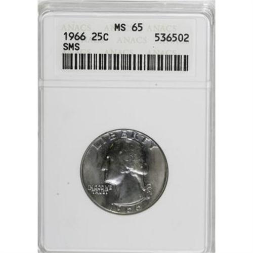 <B>1934 25C Double Die Obverse VF20 ANACS</B></I> and a <B>1966 SMS MS65 ANACS.</B></I><BR><BR><B>Coin Engraver:</B> John Flanagan<BR><BR><b>Shipping:</b> Coins & Currency (<a target="_blank" href="http://www.heritageauctions.com/common/shipping.php">view shipping information</a>)