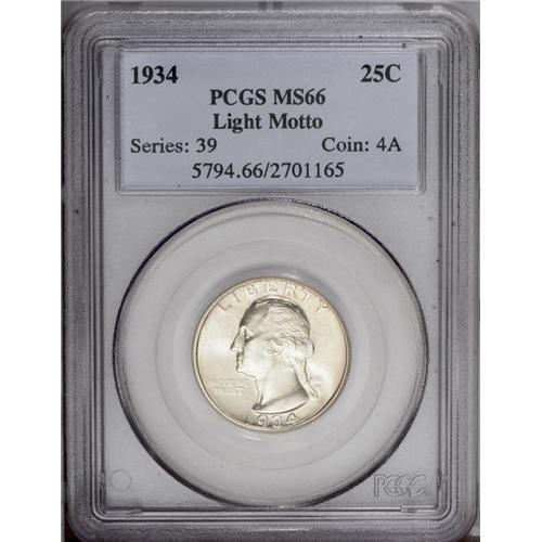 1934 25C LT MOTTO MS66 PCGS.From The Houston Collectio 1934[25C] Light Motto MS66 PCGS.