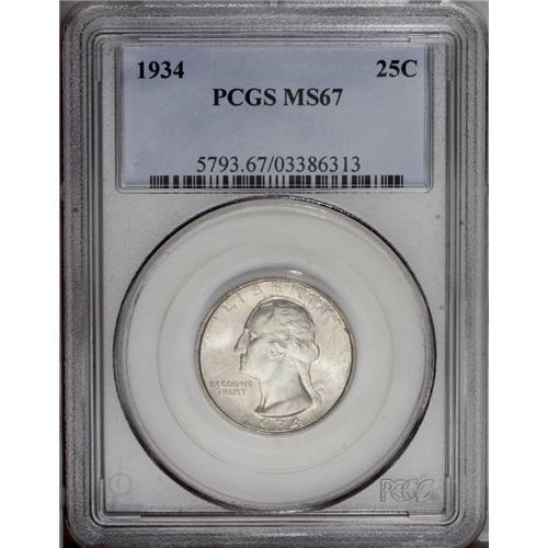 1934 25C MS67 PCGS.From The Houston Collection of Wash 1934[25C] Medium Motto MS67 PCGS.