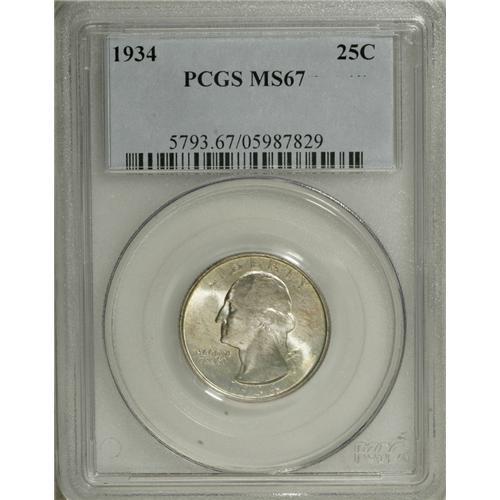 1934 25C Medium Motto MS67 PCGS. Smoke-gray surfaces w