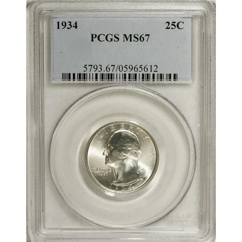 1934 25C Medium Motto MS67 PCGS. Vibrant cartwheel she