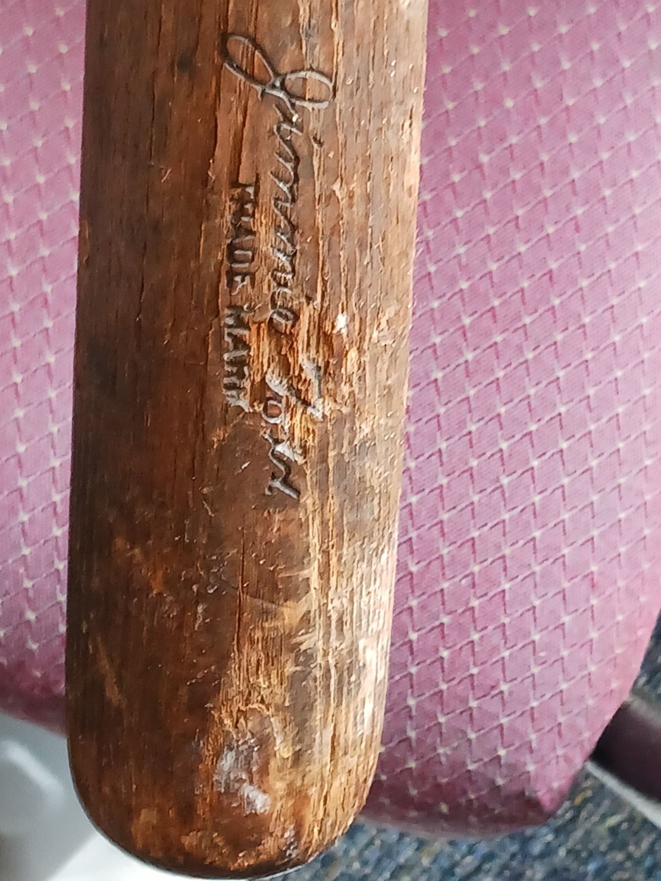 This bat is believed to have been played by Jimmie Foxx himself during an exhibition tour of Canada in 1934.