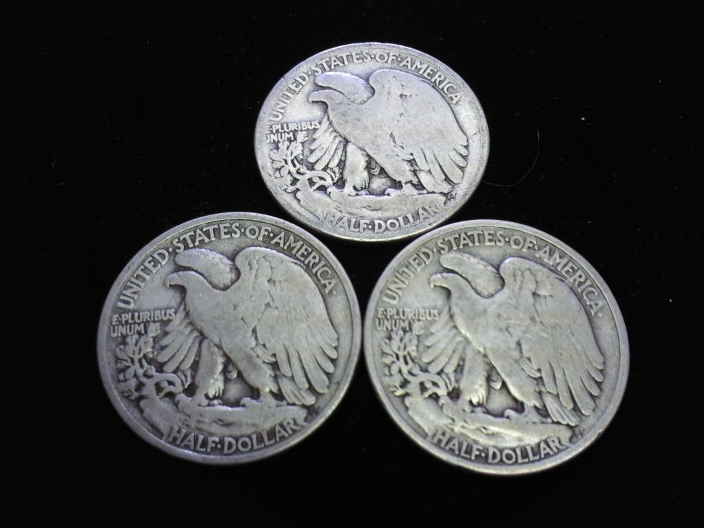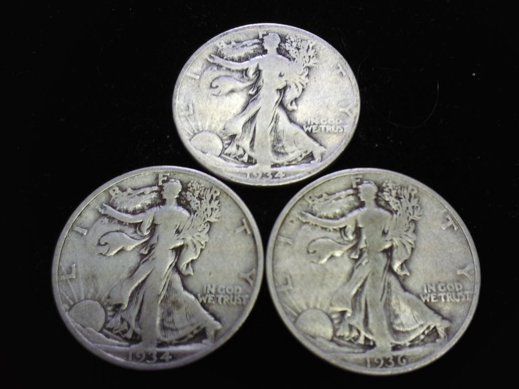 1934, 34 & 36 WALKING LIBERTY HALF DOLLARS 3 COINS