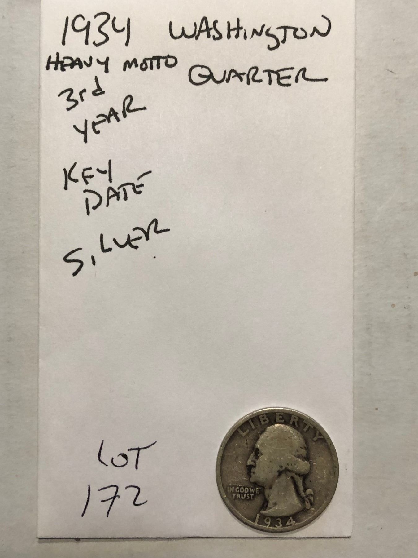 1934 3rd Year Key Date Heavy Motto Washington Silver Quarter