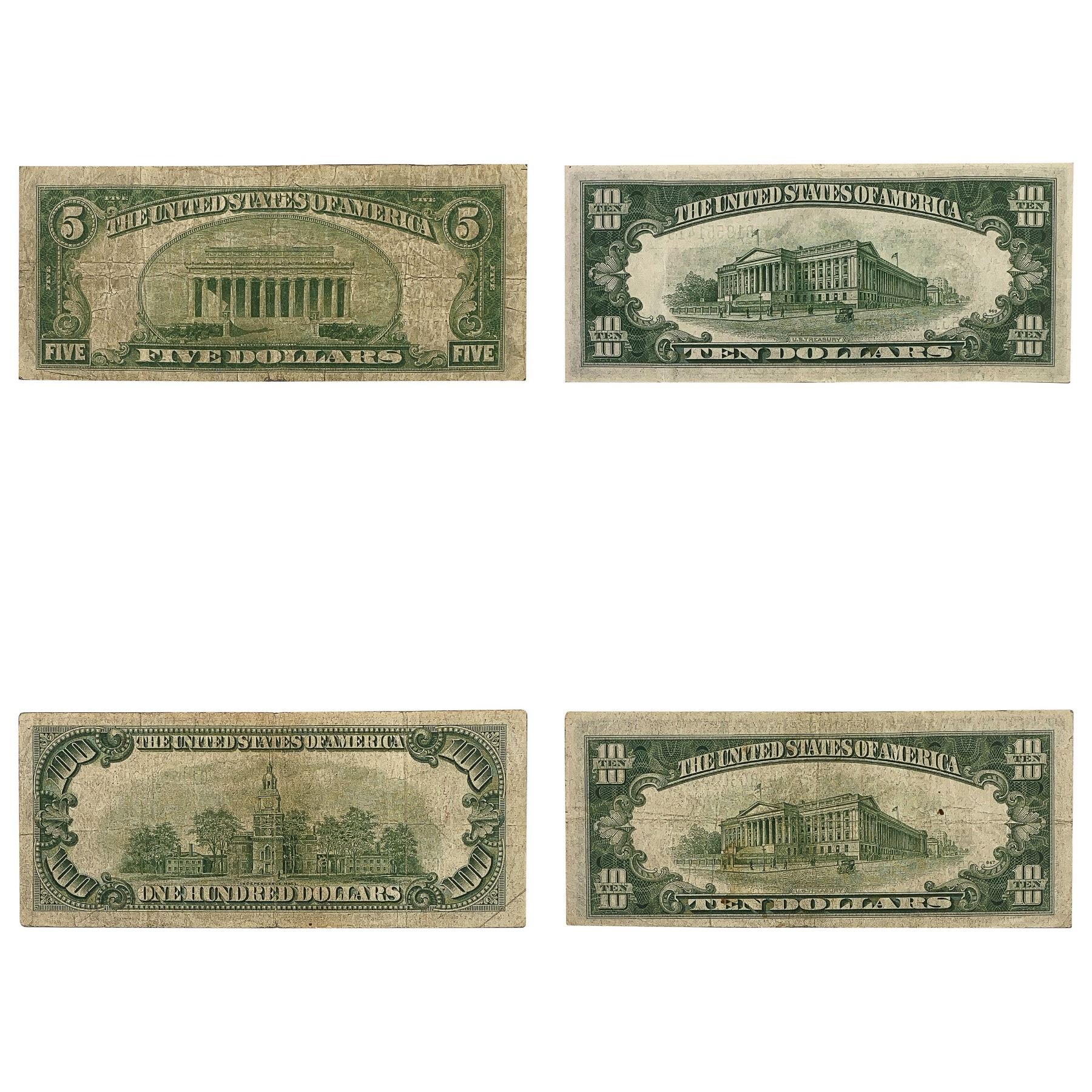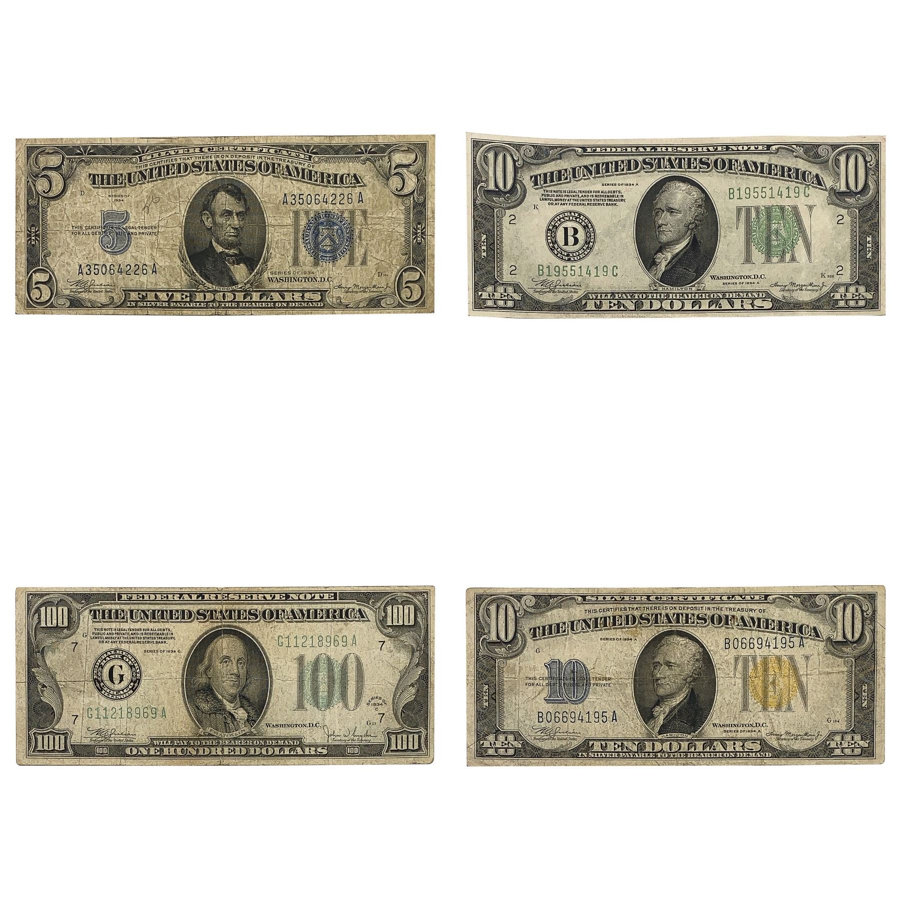 1934 [4] $5, $10, $100 Federal Reserve/ Silver Certificate Notes