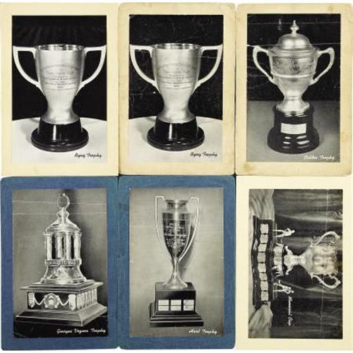 <B>1934-43 Bee Hive Group 1 Trophy Photos Lot of 6.</B></I> From the original Bee Hive photograph promotion that ran from 1934-43 we present this collection of images of the utmost attractiveness and rarity. While condition may cause a small amount of concern, that doubt should be alleviated considering that each of these in its own right serves as a desirable hobby gem that would cause any serious collector of hockey vintage to clamor. Each photograph has been mounted to final measurements of 5 3/8" x 7 3/8". Included are photos of the Byng Trophy (x2), Calder Trophy, Vezina Trophy, Hart Trophy and the Memorial Cup. Simply breathtaking collection of tough photos rarely, if ever, seen at auction.<BR><BR><b>Shipping:</b> Flat Material, Small (<a target="_blank" href="http://www.heritageauctions.com/common/shipping.php">view shipping information</a>)