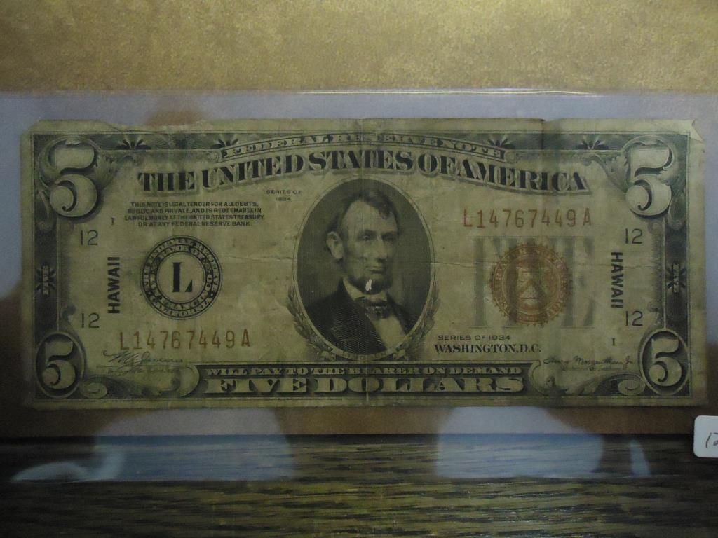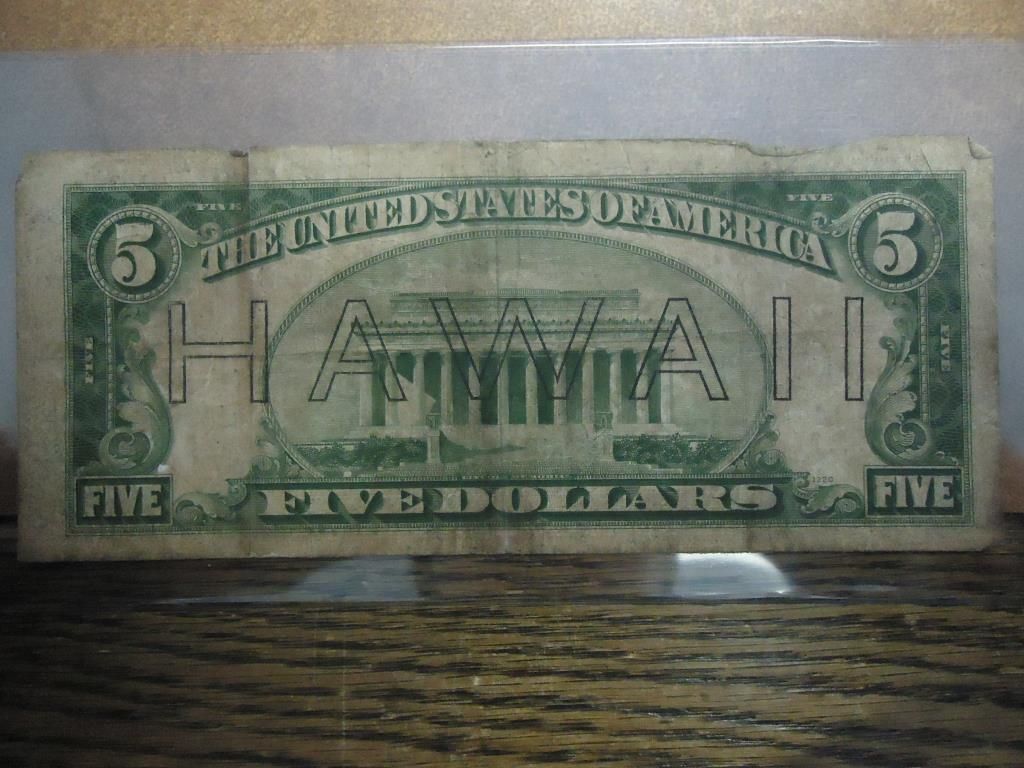 1934 $5 FRN HAWAIIAN OVERPRINT BROWN SEAL