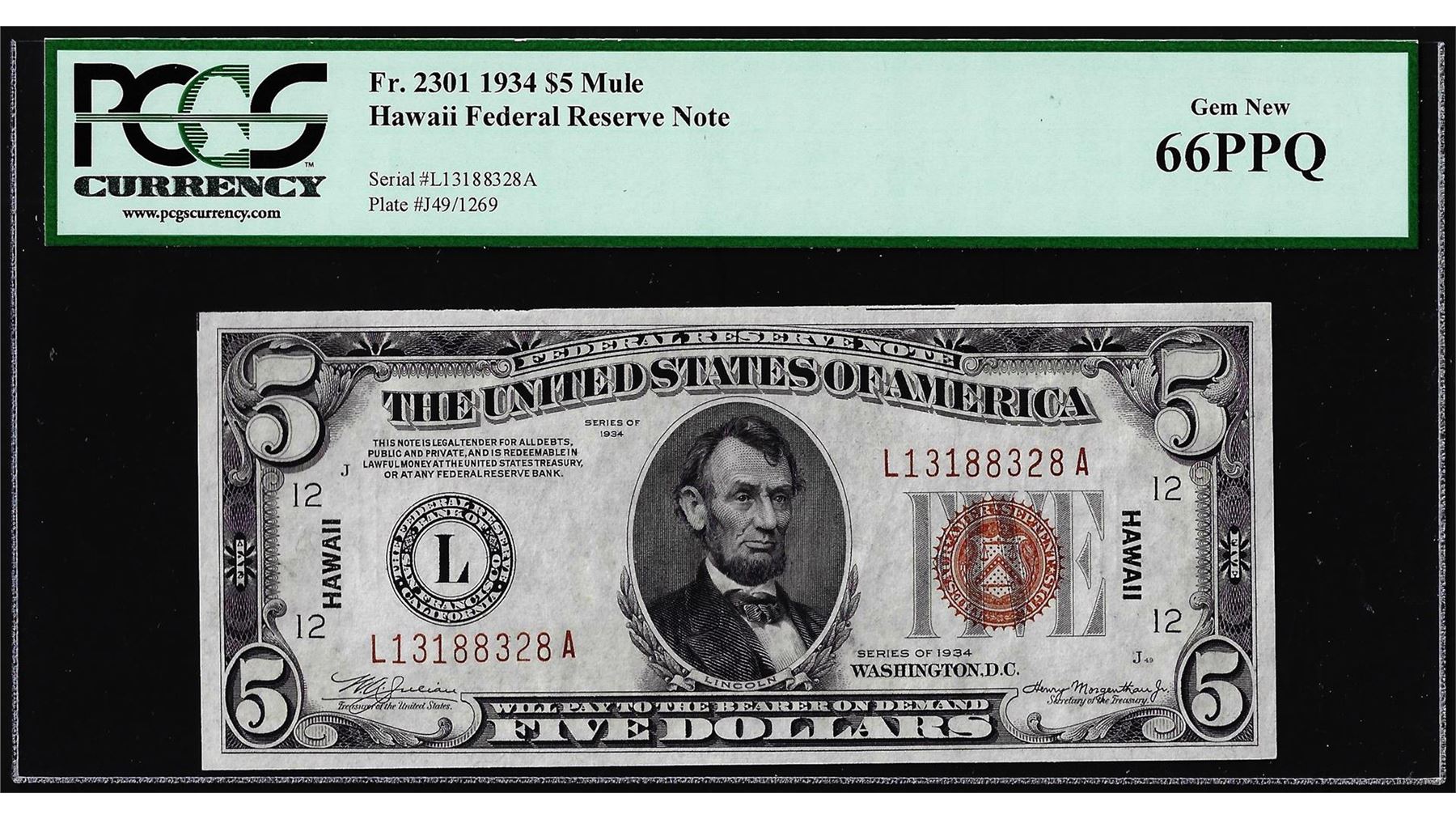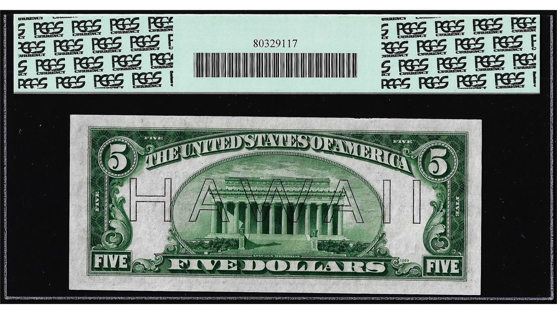 One 1934 $5 Hawaii WWII Emergency Issue Federal Reserve Note PCGS Gem New 66PPQ. PCGS Graded.