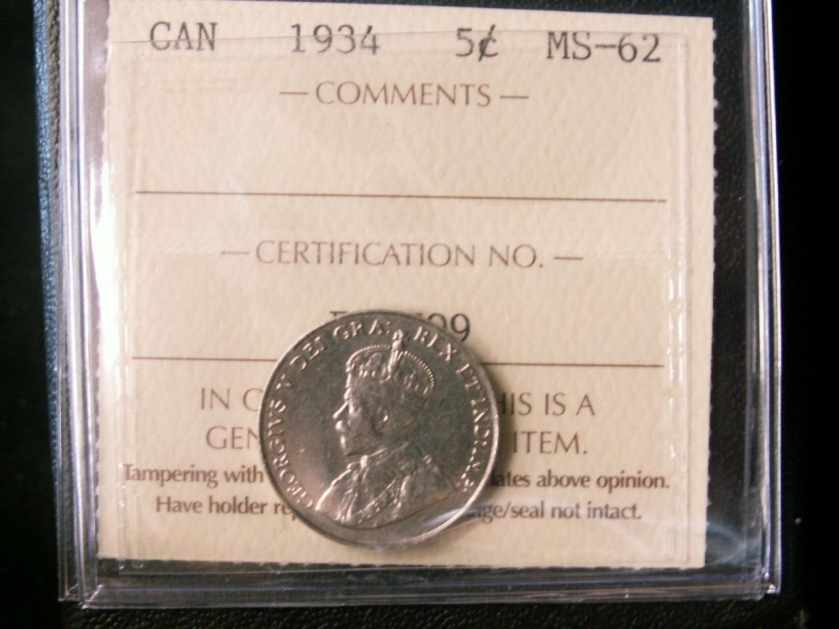 1934 5¢ ICCS MS62. A better date.