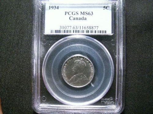 1934 5¢ ICCS MS63. A strong strike example with full beads. Scarce!
