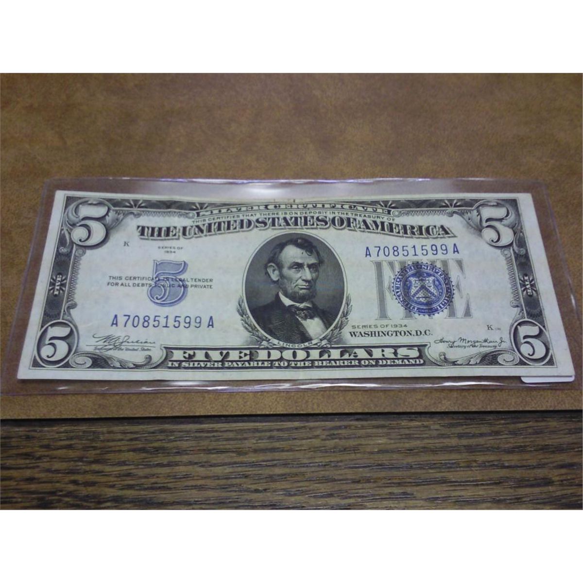 1934 $5 SILVER CERTIFICATE BLUE SEAL