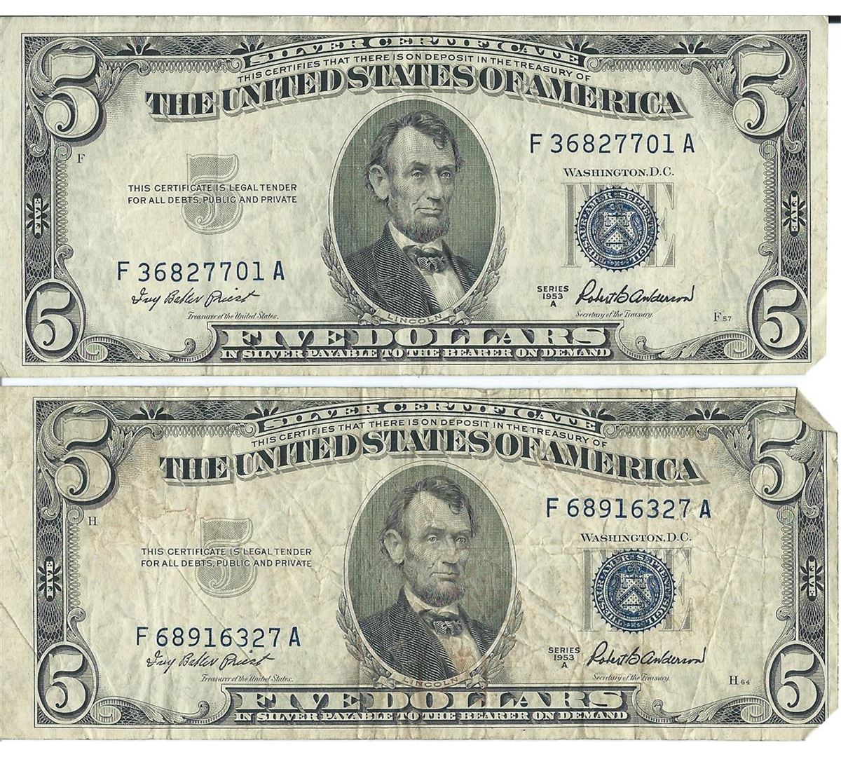 1934 $5 Silver Certificate Currency Lot of 2.