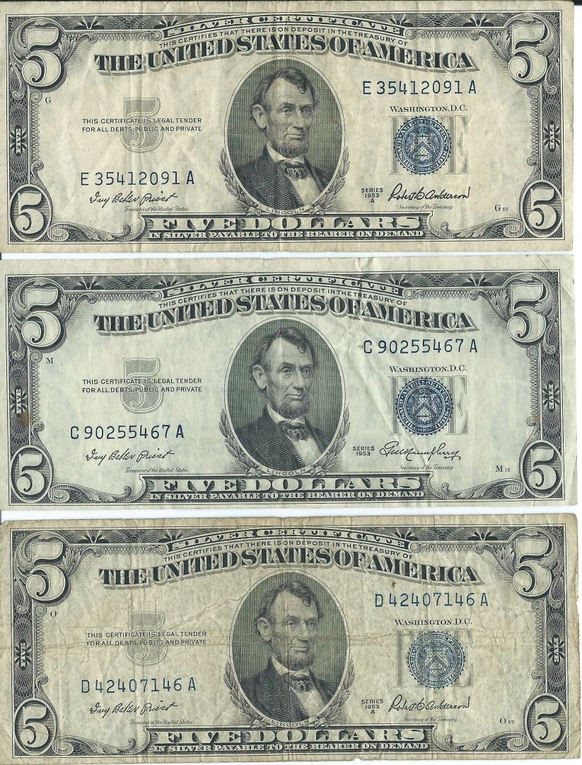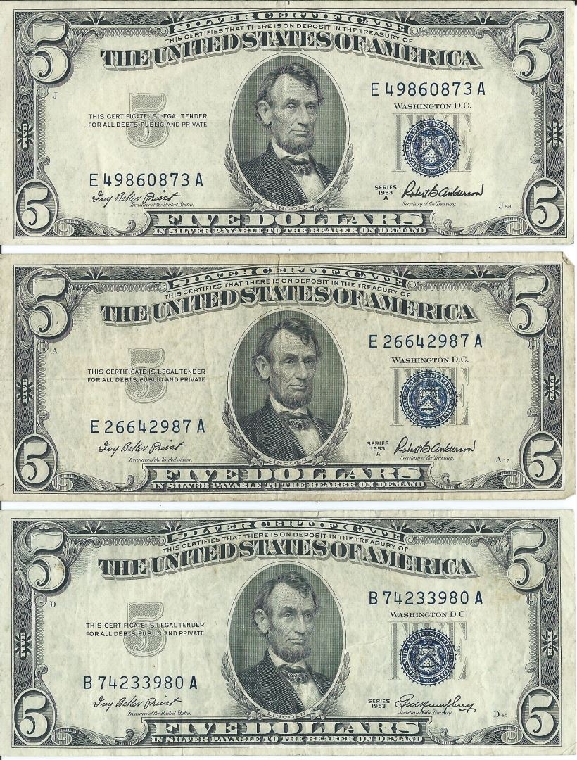 1934 $5 Silver Certificate Currency Lot of 6.