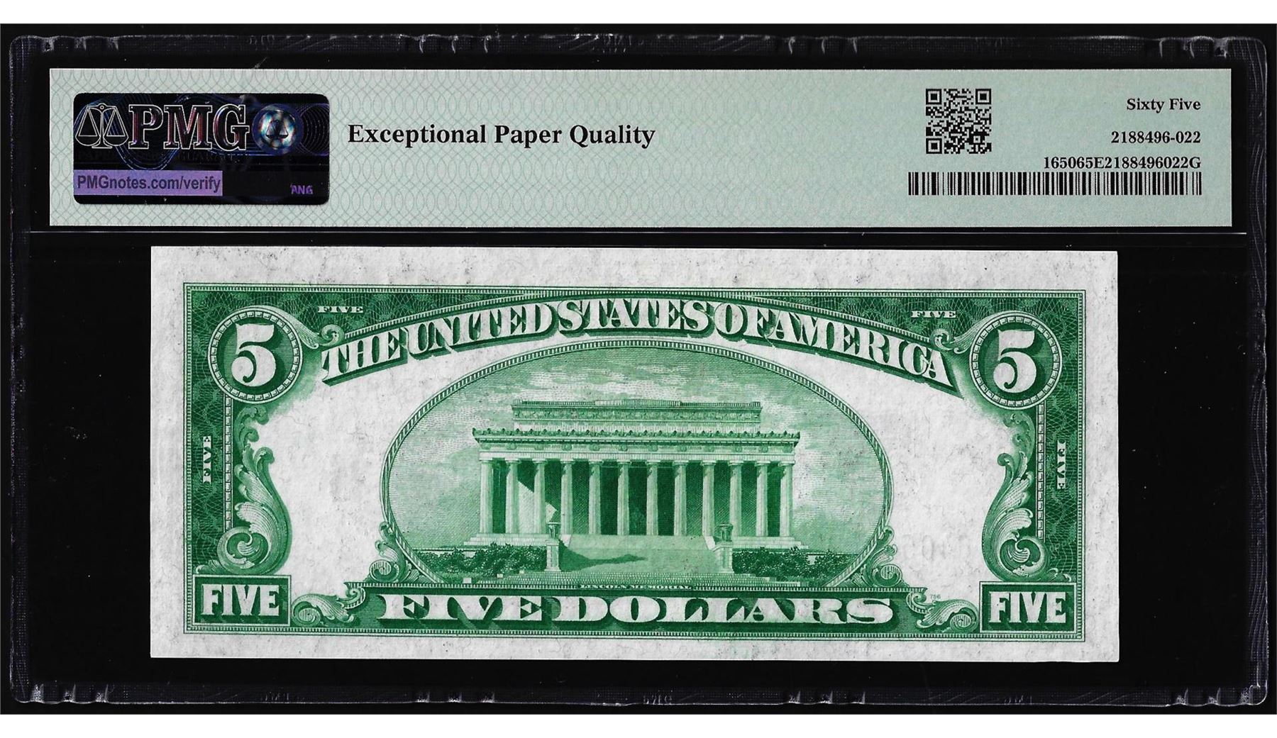 1934 $5 Silver Certificate Note Fr.1650 PMG Gem Uncirculated 65EPQ