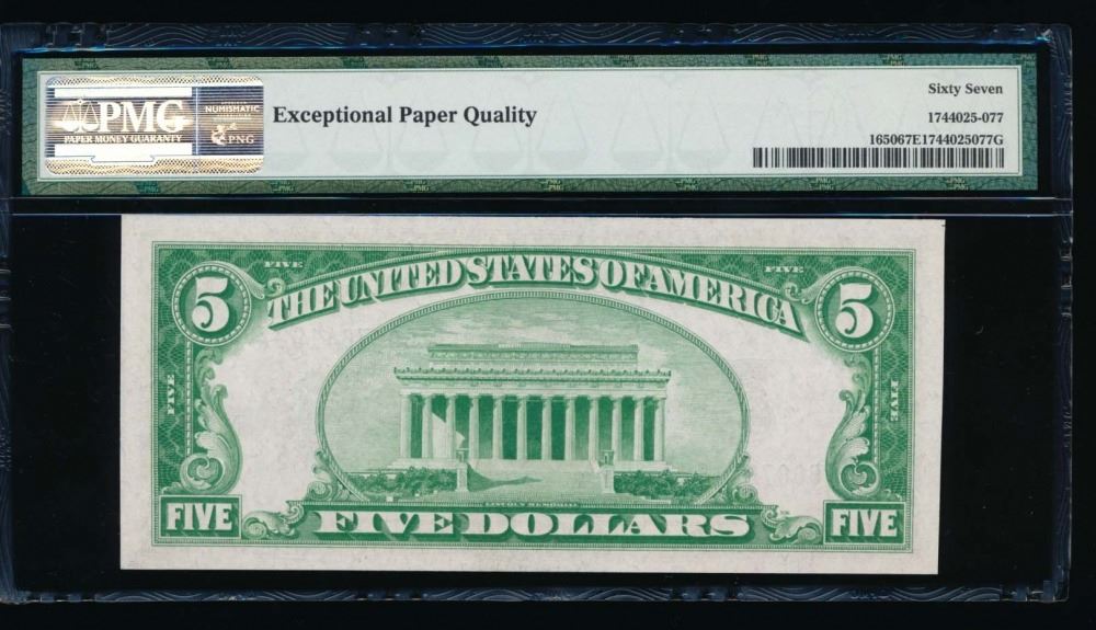 One 1934 $5 Silver Certificate PMG 67EPQ.