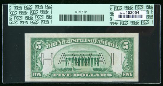 1934, $5 World War II Emergency Note. Hawaii